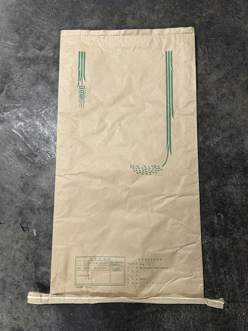 米が30kg入っていた紙袋です。 サイズ:(縦)800mm×(横)415mm、(マチ)75mm ※紙3層または4層
